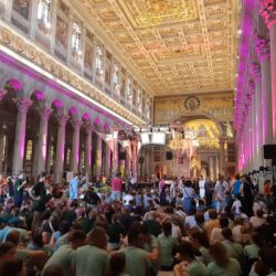 Unser letzter Tag in Rom begann mit dem Abschlussgottesdienst der Erzdiözese Freiburg. Wir gehörten dabei zur ersten Gruppe und waren gemeinsam mit 3000 anderen Ministranten in der Kirche Sankt Paul vor den Mauern, um mit unserem Erzbischof den Abschluss der Wallfahrt zu feiern. Nach dem Gottesdienst haben wir dann noch einen alten Bekannten wieder getroffen, Jörg Künning - mit seiner Gruppe aus Messkirch. Nach einer kleinen Laolawelle und einem Bild, konnten wir dann auch den Erzbischof treffen und sogar mit ihm ein Foto machen. Dann haben wir uns auf den Weg gemacht. Das erste Stück noch als große Gruppe, wobei es beinahe zu einem Unfall kam, als Pfarrer Ret sich unter eine schließende Schranke stellte, nur ein Warnruf konnte uns vor einem "Heiligen Torsten, Schutzpatron der Beschränkten" bewahren. Im Folgenden, haben wir uns dann in zwei Kleingruppen aufgeteilt, diejenigen, die nochmal in Richtung Pantheon wollten, um dort zum Trevibrunnen und zur Spanischen Treppe zu gehen und etwas zu Shoppen, und diejenigen, die mit Pfarrer Ret aufgebrochen sind, um noch ein paar Kirchen anzuschauen. Unser Rundgang began mit einer Runde Eis. Nach dieser Stärkung, sind wir zum Trevibrunnen aufgebrochen. Nach einigen Minuten Gedränge durch enge Gassen mit vielen Anderen, standen wir recht überrascht vor dem Brunnen. Er ist Teil eines Gebäudes, groß und beeindruckend, doch von Weitem hat man ihn nicht bemerkt. Er lag fast schon verborgen zwischen den Häusern. Ihn vollständig zu sehen war jedoch schwierig, da viele Menschen auf dem Platz waren und sich um den Brunnen gedrängt haben. Nachdem ein Teil unserer Gruppe Münzen für Glück in den Brunnen geworfen hatte, sind wir weiter zur Spanischen Treppe, auch hier war es voll, doch der Zugang war leichter. Wir sind die freien Treppen hinauf und haben die Aussicht genossen, da es verboten ist dort zu sitzen, konnte man tatsächlich die Treppe selbst sehen, da Viele nur unten standen und nicht hoch gelaufen sind. Nach etwas Zeit um die Eindrücke zu verarbeiten, haben wir uns dann auf den Rückweg zur großen Gruppe gemacht. Auf dem Weg, haben wir noch ein paar Souvenirs eingekauft, um dann überpünktlich anzukommen. Um 18 Uhr ging es dann zurück, um sich mit der Kirchengruppe wieder zu treffen. Nach einer recht langen und anstrengenden Busfahrt, mussten wir dann feststellen, dass wir doch nicht ganz von Dieben verschont wurden. Ein ärgerlicher Zwischenfall auf der letzten Busfahrt vor der Abreise, aber wir können dankbar sein, dass wir so glimpflich davon gekommen sind. Nach einer kurzen Einkaufs- und Toilettenpause sind wir dann mit dem Bus losgefahren. Auf in die Nacht und zurück in Richtung Deutschland.